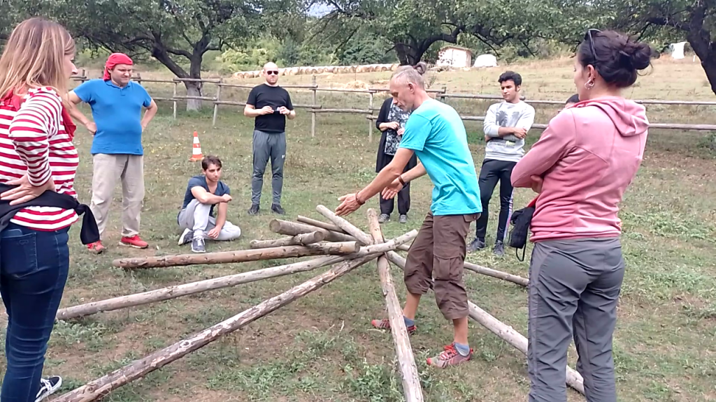 The practices from metaphor cards to the construction of a reciprocal roof represents a profound exploration of self-discovery, trust-building, and relationship construction, symbolizing the reciprocity and mutual support required in relationships. This shared endeavor deepens connections, with participants integrating their metaphorical insights into their actions during construction. This holistic approach combines emotional and physical growth, emphasizing the interwoven concepts of metaphor, trust, and building, offering a multi-layered and transformative journey of self and interpersonal exploration.